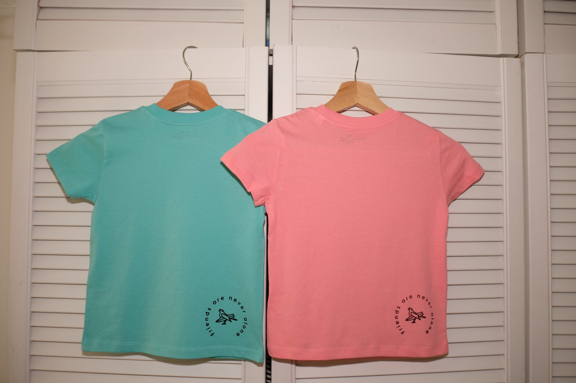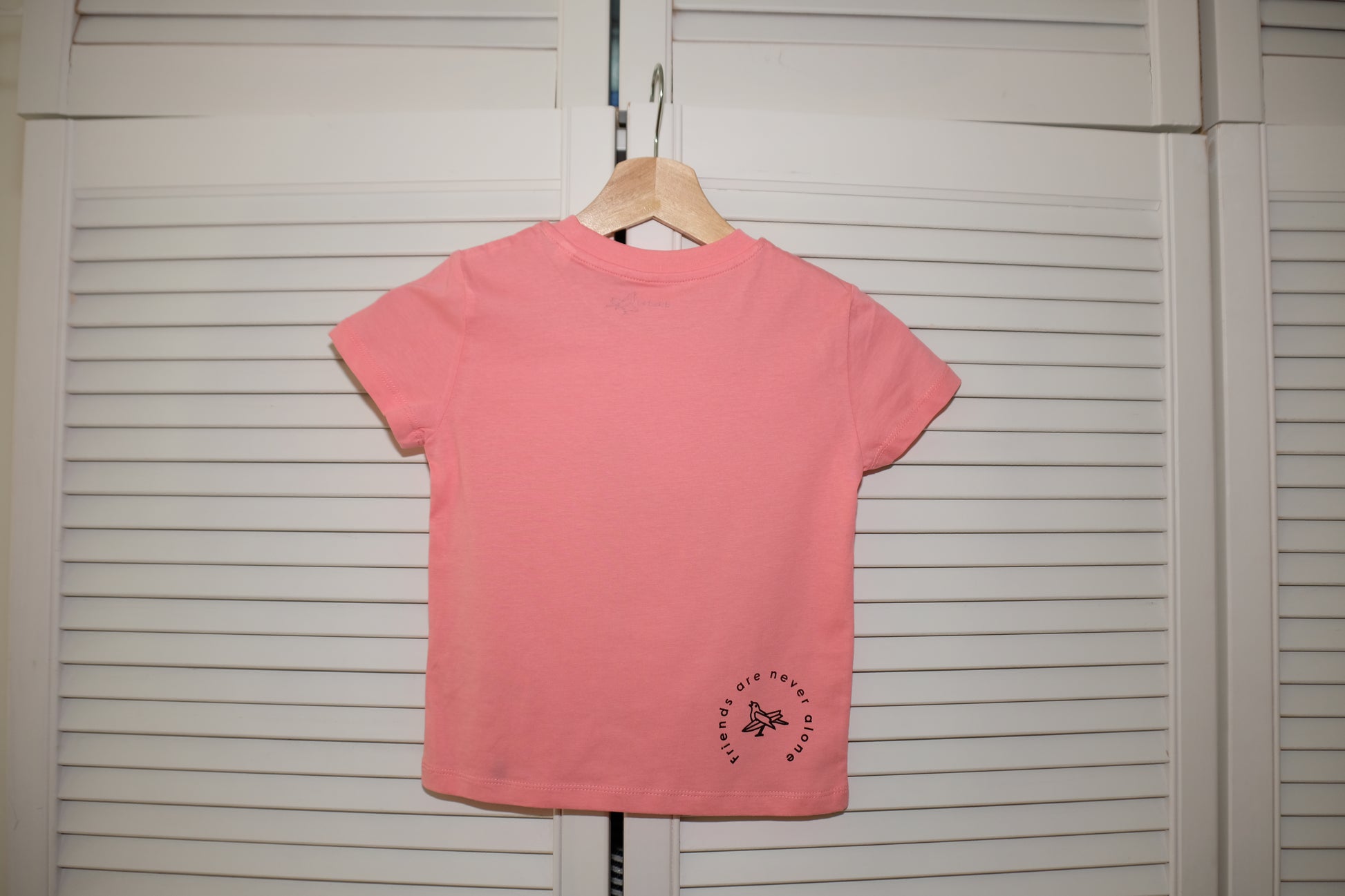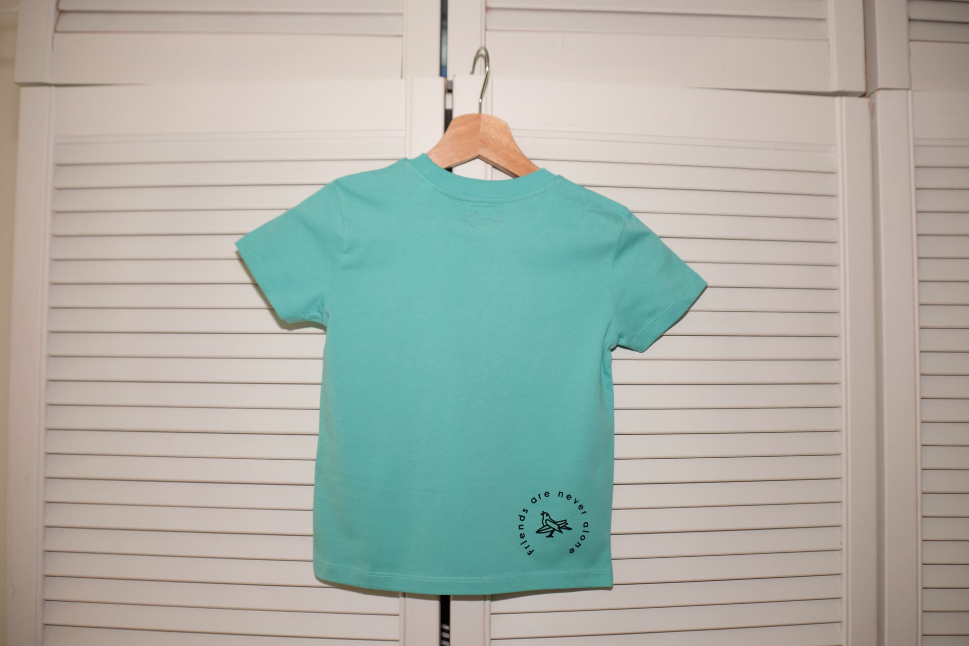 Hier ist unser Affe "Jockel" vorne aufgedruckt. Auf der T-Shirt Rückseite befindet sich unten rechts der Slogan "Friends are never alone" in Kombination mit unserem stokedbird Vögelchen. Vorne, am linken, unteren Saum befindet sich ein stokedbird Webetikett.